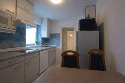 Die Nichtraucher-Wohnung ist für 5 bis 7 Personen ausgelegt. Zu jedem Zimmer gehört ein eigenes Duschbad mit WC und Waschbecken . 1. Wohnbereich